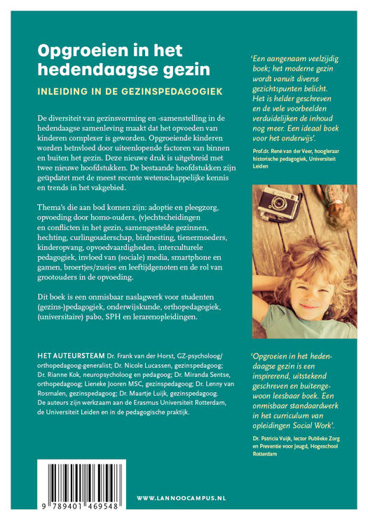 De diversiteit van gezinsvorming en -samenstelling in de hedendaagse samenleving maakt dat het opvoeden van kinderen complexer is geworden. Opgroeiende kinderen worden beïnvloed door uiteenlopende factoren van binnen en buiten het gezin. Deze nieuwe druk is uitgebreid met twee nieuwe hoofdstukken. De bestaande hoofdstukken zijn geüpdatet met de meest recente wetenschappelijke kennis en trends in het vakgebied.