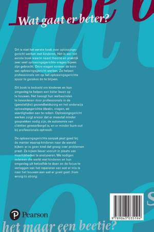 Dit boek is bedoeld om kinderen en hun omgeving te helpen een beter leven op te bouwen. Het beoogt hun welbevinden te bevorderen door professionals in de (geestelijke) gezondheidszorg en het onderwijs oplossingsgerichte ideeën, vragen, en vaardigheden aan te reiken. Oplossingsgericht werken zorgt ervoor dat er meestal minder gesprekken nodig zijn, de autonomie van cliënten gewaarborgd is, en er minder burn-out bij professionals optreedt.