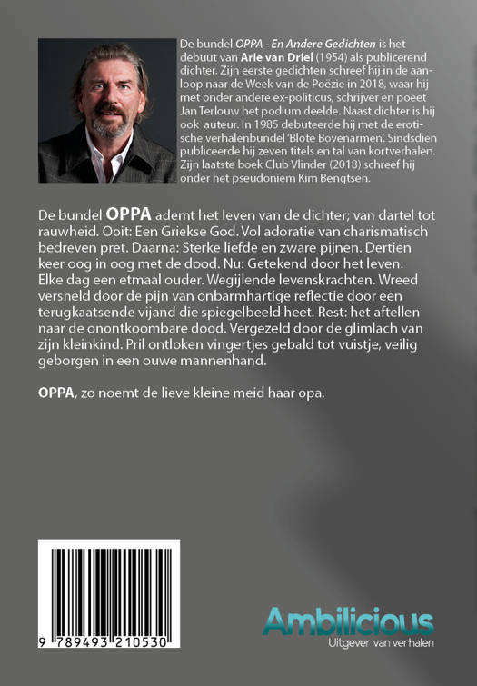 De bundel OPPA - En Andere Gedichten is het debuut van Arie van Driel (1954) als publicerend dichter. Zijn eerste gedichten schreef hij in de aanloop naar de Week van de Poëzie in 2018, waar hij met onder andere ex-politicus, schrijver en poeet Jan Terlouw het podium deelde. Naast dichter is hij ook auteur. In 1985 debuteerde hij met de erotische verhalenbundel ‘Blote Bovenarmen’. Sindsdien publiceerde hij zeven titels en tal van kortverhalen. Zijn laatste boek Club Vlinder (2018) schreef hij onder het pseudoniem Kim Bengtsen.