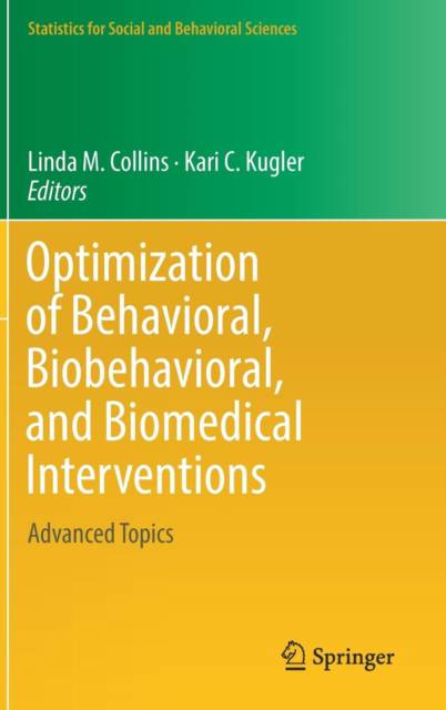 Contributed chapters cover statistical analysis, adaptive interventions and real-world implementation examples Makes formal optimization of behavioral and biobehavioral interventions easy to implement in research and practice Builds on methodology presented in monograph by Linda Collins, "Optimization of Behavioral and Biobehavioral Interventions" (Springer, 2018)