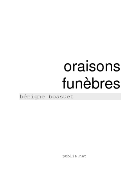 Nous mourons tous, disait cette femme dont l’Ecriture a loué la prudence au second livre des Rois, et nous allons sans cesse au tombeau, ainsi que des eaux qui se perdent sans retour. En effet, nous ressemblons tous à des eaux courantes. De quelque superbe distinction que se flattent les hommes, ils ont tous une même origine ; et cette origine est petite. Leurs années se poussent successivement comme des flots ; ils ne cessent de s’écouler ; tant qu’enfin, après avoir fait un peu plus de bruit et traversé un peu plus de pays les uns que les autres, ils vont tous ensemble se confondre dans un abîme où l’on ne reconnaît plus ni princes, ni rois, ni toutes ces autres qualités superbes qui distinguent les hommes ; de même que ces fleuves tant vantés demeurent sans nom et sans gloire, mêlés dans l’Océan avec les rivières les plus inconnues.