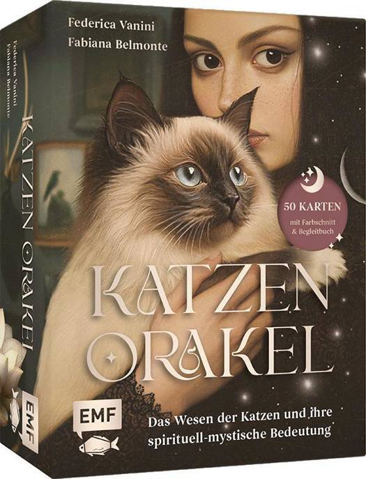 Die mystischen Katzen-Illustrationen von Fabiana Belmonte ziehen sowohl Katzen- wie auch Orakel-Liebhaber*innen magisch an. Sie verbinden realistische Katzen-Darstellungen mit surrealistischen, symbolreichen Traumwelten und geben so Einblicke in die intuitiven Dimensionen der Katzen. Das zugehörige Begleitbuch ordnet den Katzen aus aller Welt jeweils einen Archetyp sowie einen Orakel-Deutungstext zu, womit sich die Karten bestens für die persönliche Orakel-Praxis und zur Meditation eignen. Diese mystische Inspiration bietet somit auch Einsteiger*innen einen einfachen Weg, die geheimnisvolle Welt der Katzen in ihren Alltag zu integrieren.