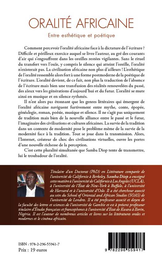 Comment percevoir l'oralité africaine face à la dictature de l'écriture ? Les genres littéraires qui émergent de l'oralité africaine naviguent furtivement entre mythe, conte, épopée, généalogie, roman, poésie, musique et silence. Il ne s'agit pas uniquement de tradition mais bien de la nouvelle alliance entre le passé et le futur. Tout se joue dans la transmission. C'est cette pluralité simultanée que Samba Diop, troubadour de l'oralité, tente de transmettre.