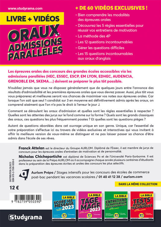 Ce livre offre une préparation aux épreuves d'entretien et de langues, de nombreux exemples pour s'approprier les réponses aux questions les plus souvent posées à l'oral et une méthode interactive qui mêle livre et vidéos (QRCodes) et qui incite à se mettre en situation.