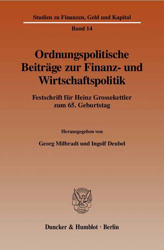 Heinz Grossekettler hat sich in seiner wissenschaftlichen Laufbahn mit einem breiten Spektrum volkswirtschaftlicher Probleme und Fragen beschäftigt. Dabei hat er stets besonderen Wert auf eine konsequente theoretische und ordnungspolitische Fundierung gelegt und auch den Anspruch auf praktische Verwertbarkeit erhoben. Die Beiträge dieser Festschrift spiegeln das sehr breit gefächerte Interessenspektrum sowie die besonderen Ansprüche des Jubilars wider.