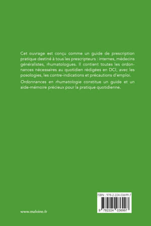 Cet ouvrage est conçu comme un guide de prescription pratique destiné à tous les prescripteurs : internes, médecins généralistes, rhumatologues. Il contient toutes les ordonnances nécessaires au quotidien rédigées en DCI, avec les posologies, les contre-indications et précautions d'emploi. Ordonnances en rhumatologie constitue un guide et un aide-mémoire précieux pour la pratique quotidienne.