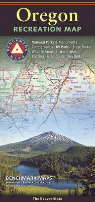 The Oregon Recreation Map is a folded map version of the Recreation Guide pages within Benchmark's Oregon Road & Recreation Atlas. One side provides a full state map that features Public Lands, extensive highway detail, point-to-point mileages, recreation attractions, campgrounds, parks and wildlife areas, fishing access points, and hunting units (GMU). The reverse side features categorized recreation POI listings with helpful descriptions, current contact information, and map grid references.