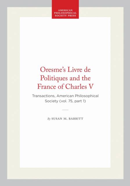 Charles V was a scholarly king who commissioned French versions of ancient & medieval treatises for the express purpose of guiding his government. To translate Aristotle's "Politics" he chose Nicole Oresme, an ingenious philosopher whose aptitude & attitudes made him an effective supporter of the Valois monarchy. Oresme's task was to take his text out of the language of a small but international community of scholars & adapt it to serve the French people, making it accessible to a new & broad audience. Contents: Oresme & his Version of the "Politics"; Oresme & the Commentary Tradition of the "Politics"; Nat. Sovereignty & the Hierarchy of Communities; The Public State & the Common Good; The "Politics," the "Livre de Politiques," & the Church; Aristotle, Oresme, & Gallicanism; Conclusion; & Bibliography.