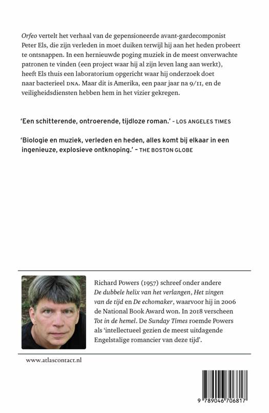 Orfeo vertelt het verhaal van de gepensioneerde avant-gardecomponist Peter Els, die zijn verleden in moet duiken terwijl hij aan het heden probeert te ontsnappen. In een hernieuwde poging muziek in de meest onverwachte patronen te vinden (een project waar hij al zijn leven lang aan werkt) heeft Els thuis een laboratorium opgericht waar hij onderzoek doet naar bacteriële DNA. Maar dit is Amerika, een paar jaar na 9/11, en Homeland Security heeft hem in het vizier gekregen.