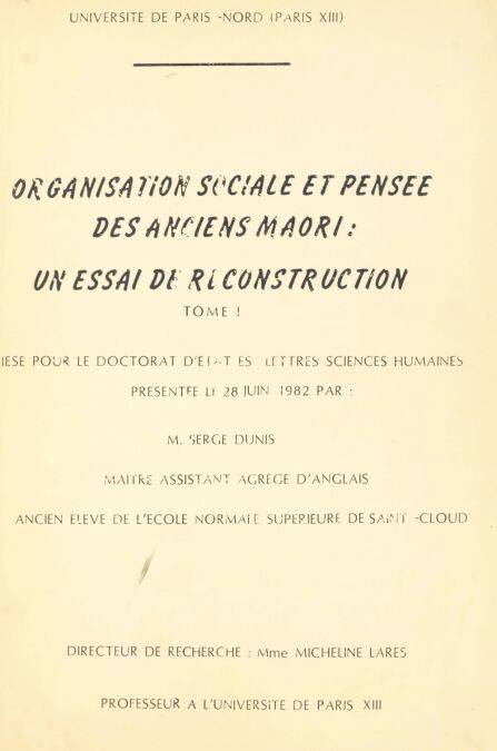 Organisation sociale et pensée des anciens Maori : un essai de reconstruction (1) E-BOOK