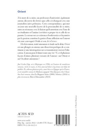 À la mort de sa mère, un professeur d'université, également auteur, découvre des lettres que celle-ci échangeait avec une journaliste juive polonaise. Cette correspondance, qui met au jour une nouvelle facette de la personnalité de sa mère, entre en résonance avec la liaison qu'il entretient avec l'une de ses étudiantes et l'amène à revisiter sa propre vie et celle de ses parents. Le retour sur ces existences bouleversées et façonnées par la passion constitue la genèse d'une réflexion sur l'amour où sont convoqués Ovide et son Art d'aimer. À la fois roman, traité amoureux et étude sur le désir, Orient est une plongée en amour, une dissection poétique de ce sentiment et une interrogation sur sa transmission à travers l'éducation. L'amour peut-il durer toute une vie ? Y a-t-il plusieurs façons d'aimer, plusieurs versants de l'amour : un Orient et un Occident amoureux ?