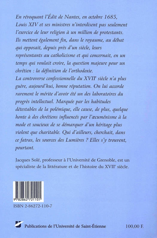 L'auteur démontre ici que la controverse confessionnelle autour de la définition de ce que devait être l'orthodoxie du catholicisme a le mérite d'avoir été un des laboratoires du progrès intellectuel et un ferment des idées des Lumières.