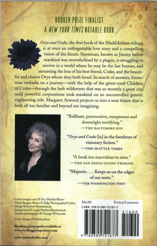 NATIONAL BESTSELLER - The first volume in the internationally acclaimed MaddAddam trilogy is at once an unforgettable love story and a compelling vision of the future--from the bestselling author of The Handmaid's Tale and The Testaments A Kirkus Reviews Best Fiction Book of the Century Snowman, known as Jimmy before mankind was overwhelmed by a plague, is struggling to survive in a world where he may be the last human, and mourning the loss of his best friend, Crake, and the beautiful and elusive Oryx whom they both loved. In search of answers, Snowman embarks on a journey