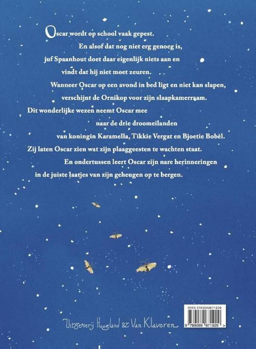 Oscar wordt op school vaak gepest. En alsof dat nog niet erg genoeg is, juf Spaanhout doet daar eigenlijk niets aan en vindt dat hij niet moet zeuren. Wanneer Oscar op een avond in bed ligt en niet kan slapen, verschijnt de Ornikop voor zijn slaapkamerraam. Dit wonderlijke wezen neemt Oscar mee naar de drie droomeilanden van koningin Karamella, Tikkie Vergat en Bjoetie Bobèl. Zij laten Oscar zien wat zijn plaaggeesten te wachten staat. En ondertussen leert Oscar zijn nare herinneringen in de juiste laatjes van zijn geheugen op te bergen.