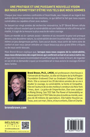 Chaque jour nous sommes confrontés à l’incertitude, aux risques et au regard des autres devant l’expression de nos émotions, ce qui définit le fait que nous soyons vulnérables ou capables d’oser avec audace. Se basant sur vingt années de recherche innovatrice, la Docteure Brené Brown réfute le mythe culturel voulant que la vulnérabilité est une faiblesse et elle affirme qu’en réalité, il s’agit de la mesure la plus exacte de notre courage. Dans un monde où le « jamais assez » domine et où ressentir la peur est presque devenu une deuxième nature, la vulnérabilité devient inconfortable, destructive et même un peu dangereuse parfois. Sans aucun doute, nous sortir de notre zone de confort et oser nous lancer entraîne un risque beaucoup plus grand d’être critiqués ou de nous sentir blessés. Mais Brené Brown explique que, lorsque nous nous coupons de la vulnérabilité, nous nous distancions des expériences qui confèrent un but et un sens à notre vie, et que rien n’est aussi incommodant et souffrant que de rester à l’écart, de regarder en soi et de se demander à quoi ça ressemblerait si nous avions le courage d’entrer dans l’arène.