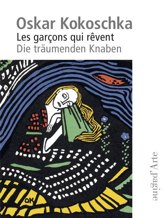 Ce livre illustré de huit lithographies en couleurs – Les Enfants qui rêvent – propose un conte écrit et illustré par Kokoschka et publié en 1908, dédié par l’artiste à Gustave Klimt, son maître.Le graphisme porte l’empreinte de l’Art Nouveau: l’arabesque conduit les figures dans des paysages idylliques, une nature mystique comme chez Hodler. Les illustrations comme le texte relèvent du songe, du rêve érotique. Nuits étoilées, voyages sur mer et fuite hors du temps, désirs amoureux, végétation paradisiaque et fantastique manifestent un univers imaginaire. Peintre autrichien, Oskar Kokoschka (1886-1980) a été l’élève de Gustav Klimt. Très vite il s’éloigne de l’Art Nouveau: et suit une voie expressioniste. Il s’installe d’abord à Berlin ensuite à Dresde (1919-1924), après avoir été gravement blessé pendant la Première Guerre. Rentre à Vienne en 1933 qu’il quitte pour Prague oú il rencontre celle qui deviendra sa femme, Olda Palkowska. Son art considéré ‘dégénéré’ l’oblige à partir d’abord à Londres avant de se fixer définitivement à Villeneuve, en Suisse. La Fondation Kokoschka est accueillie au Musée Jenisch de Vevey.