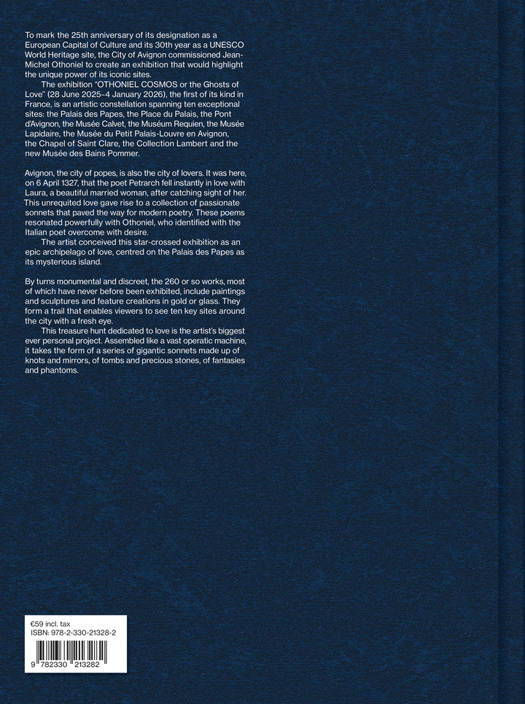 Pour fêter les vingt-cinq ans de sa désignation comme capitale européenne de la culture, la Ville d'Avignon a confié à Jean-Michel Othoniel le soin d'investir ses sites emblématiques et ses musées. Du 28 juin 2025 au 4 janvier 2026, l'exposition "Cosmos ou les Fantômes de l'amour" présentera plus de 220 oeuvres, dont 160 nouvelles créations. Inscrivant ses pas dans ceux du visiteur, le catalogue compose un parcours photographique à travers la ville, soulignant les relations entre les oeuvres et l'écrin qui les accueille. Un pèlerinage amoureux où le passé se réinvente sous le regard d'un artiste visionnaire.