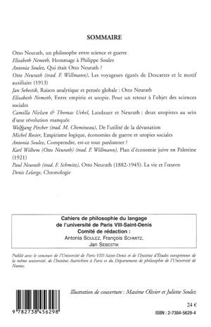 Au sommaire de ce numéro : Otto Neurath, Un philosophe entre science et guerre ; Elisabeth Nemeth, Hommage à Philippe Soulez ; Antonia Soulez, Qui était Otto Neurath ? ; Jean Sebestik, Raison analytique et pensée globale : Otto Neurath ; Paul Neurath, Otto Neurath (1882-1945). La vie et l'oeuvre."..