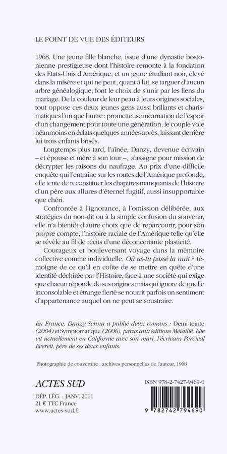 Longtemps plus tard, l'aînée, Danzy, devenue écrivain - et épouse et mère à son tour -, s'assigne pour mission de décrypter les raisons du naufrage. Au prix d'une difficile enquête qui l'entraîne sur les routes de l'Amérique profonde, elle tente de reconstituer les chapitres manquants de l'histoire d'un père aux allures d'éternel fugitif, aussi insupportable que chéri.