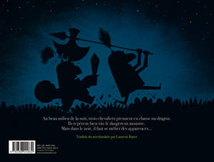 Le roi a vu un dragon et ne parvient pas à s'endormir tant il est effrayé. Pour le rassurer, trois chevaliers pas si dégourdis se lancent à sa recherche, à la lueur de leur bougie. Entre les murs du château fort et les allées du jardin plongés dans la nuit, ils croisent toutes sortes de créatures à cornes, à piques et à pointes qui se révèlent bien moins effrayantes à la lumière que dans l'ombre. Fatigués et convaincus que le dragon s'est enfui, ils regagnent leur lit. Car n'est-il pas temps aussi pour le dragon de se reposer ? Premier album de Leo Timmers traduit en France, ce livre astucieux et ludique fourmille de détails qui en appellent à l'imagination des enfants et leur apprend que rien n'est vraiment ce qu'il semble au premier abord en jouant subtilement sur les ombres et la lumière.