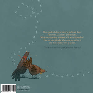 Trois poules habitent dans le jardin de Lou : Picorette, Galinette et Plumette. Mais cette dernière a disparu. Où a-t-elle pu aller ? Lou est bien décidée à la retrouver, même si elle doit fouiller tout le jardin.