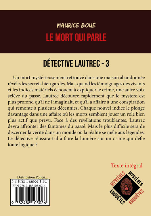 Dans un vieux château aux murs chargés de légendes, la jeuneJudith Mauvin est retrouvée poignardée dans une pièce connue sous le nom de la« Chambre Noire ». Le détective Lautrec doit percer les mystères de cettechambre maudite, où se mêlent apparitions et anciens crimes. Les villageoisparlent d’un passé sombre et de malédictions, mais Lautrec ne se laisse pasimpressionner. Armé de son sens de la déduction, il devra démêler le vrai dufaux pour démasquer le coupable. Pourtant, chaque nouvel indice semblecontredire le précédent, laissant planer l’ombre d’un manipulateur invisible.Entre mystères familiaux et énigmes surnaturelles, Lautrec se retrouve face àses propres doutes. Résoudra-t-il ce meurtre avant que le château ne révèled’autres sombres secrets ? L’échec n’est pas une option, car d’autres vies sontpeut-être en jeu.
