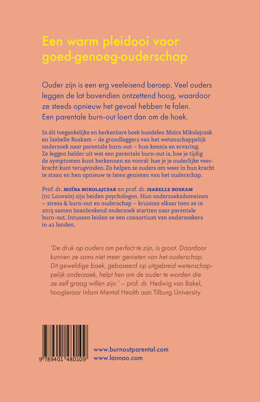 In dit toegankelijke en herkenbare boek bundelen Moïra Mikolajczak en Isabelle Roskam - de grondleggers van het wetenschappelijk onderzoek naar parentale burn-out - hun kennis en ervaring. Ze leggen helder uit wat een parentale burn-out is, hoe je tijdig de symptomen kunt herkennen en vooral: hoe je je ouderlijke veerkracht kunt terugvinden. Zo helpen ze ouders om weer in hun kracht te staan en hen opnieuw te laten genieten van het ouderschap.