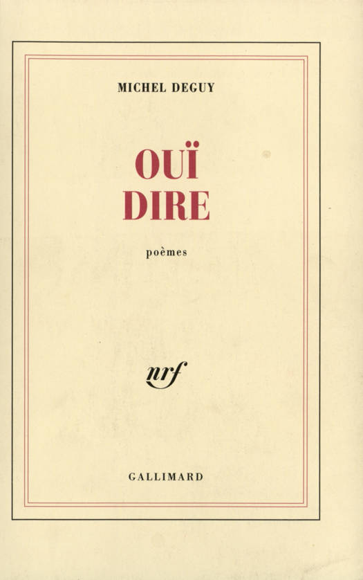 "Au seuil de la poétique est écrit : "Que ceux qui ont des oreilles pour entendre entendent." Et qu'avons-nous entendu ? L'ouïe cherche à redire, en des poèmes tels que ceux-ci, les rythmes auxquels depuis toujours elle fut éduquée ; car notre vue implique une audition première, et nous ne touchons terre que parlant en notre langue, magnifiquement comme le costume ; de même que les hommes n'auraient pas idée de se présenter à eux (au désert, à la montagne, aux rives) autrement que vêtus de telle manière, nous nous présentons en certaines tournures : le chant-royal, épigrammes, procès-verbaux, parataxes, diérèses, blasons, madrigaux. La poésie est le contraire de l'esperanto. L'homme est greffé ici de l'étrange manière langagée. Implanté à ce flanc de terre où il est nomade, et pareil à un stoïque sacrifié qui dicterait jusqu'à la fin les derniers mots de son agonie, pour que d'autres les entendent, il perçoit l'écho répercuté dans les gorges." Michel Deguy.