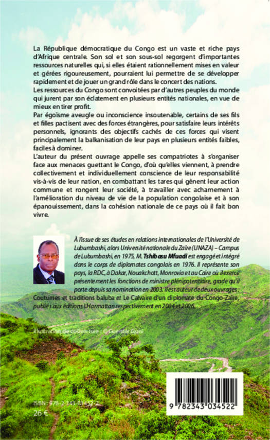 La République démocratique du Congo est un vaste et riche pays d'Afrique centrale. Ses ressources sont convoitées par d'autres peuples du monde qui jurent par son éclatement en plusieurs entités nationales, en vue de mieux en tirer profit. Par égoïsme aveugle ou inconscience insoutenable, certains congolais pactisent avec des forces étrangères, pour satisfaire leurs intérêts personnels. L'auteur appelle ses compatriotes à s'organiser face aux menaces guettant le Congo.