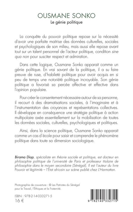 La conquête du pouvoir politique repose sur la nécessité d'avoir une parfaite maitrise des données culturelles, sociales et psychologiques de son milieu, mais aussi elle repose avant tout sur un talent personnel de l'acteur politique, condition sine qua non pour susciter respect et admiration. Dans cette logique, Ousmane Sonko apparait comme un génie politique. En vrai savant de la politique, il a su faire preuve de ruse, d'habileté politique pour avoir acquis en si peu de temps une notoriété politique incroyable. Pour créer le consentement nécessaire autour de sa personne, il recourt à des dramatisations sociales, à l'imaginaire et à l'instrumentation des croyances et représentations collectives. Ainsi, dans la science politique, Ousmane Sonko apparait comme un cas d'école pour saisir et comprendre le phénomène politique dans toute sa dimension sociologique.
