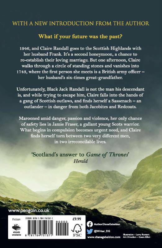 1946, and Claire Randall goes to the Scottish Highlands with her husband Frank. It's a second honeymoon, a chance to learn how war has changed them. But one afternoon, Claire walks through a circle of standing stones and vanishes into 1743, where the first person she meets is a British army officer - her husband's six-times great-grandfather.
