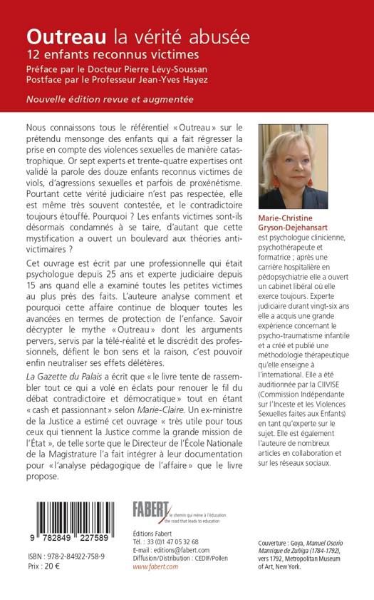 Tout le monde connaît le référentiel « Outreau » issu de l’effrayante affaire judiciaire dont le storytelling concerne le prétendu mensonge des enfants carencés... qui a fait régresser de manière catastrophique les révélations liées aux violences sexuelles. Or sept experts et 34 expertises ont validé la parole des 12 enfants reconnus victimes de viols, agressions sexuelles, corruption de mineurs et proxénétisme. Ils sont désormais condamnés à se taire comme tous les autres enfants victimes de maltraitances d’autant que la mystification d’« Outreau » a ouvert un boulevard aux théories anti-victimaires telles que le SAP (Syndrome d’Aliénation Parentale). Cet ouvrage est écrit par une professionnelle qui était Psychologue clinicienne depuis 25 ans et aussi Expert judiciaire depuis 15 ans quand elle a examiné toutes les petites victimes au plus près des faits. Marie-Christine Gryson-Dejehansart qui exerce toujours en cabinet libéral, rapporte comment et pourquoi cette affaire a basculé sur un plan sociétal avec le lynchage de coupables de substitution et l’utilisation de la télé-réalité comme argument judiciaire. Avec la réédition actualisée de Outreau, la vérité abusée, l’auteure continue d’analyser comment et pourquoi 20 ans après, la doxa d’Outreau s’est inscrite dans le marbre, au détriment de la parole des enfants. Elle souligne que de grandes lueurs d’espoir relatives à la protection des enfants sont enfin apparues en 2021, avec la création de la CIIVISE co-Présidée par le juge des enfants Edouard Durand et le retour des valeurs de civilisation. Il faut noter que dès la première édition en 2009, ce témoignage a été très remarqué : pour exemples, il a été estimé « utile » voire « indispensable » par Axel Kahn, scientifique et essayiste ; le Directeur de l’École Nationale de la Magistrature, Jean-François Thony, l’a transmis au service de documentation « afin de servir de support pédagogique sur l’analyse de l’affaire dite « Outreau » ; et Pierre Rancé chroniqueur judiciaire, ajoutera que « le livre... tente de rassembler tout ce qui a volé en éclat pour renouer le fil du débat contradictoire et démocratique ». Paru pour la première fois en 2009 chez Hugo&Cie, ce livre est une nouvelle édition revue, commentée et mise à jour.