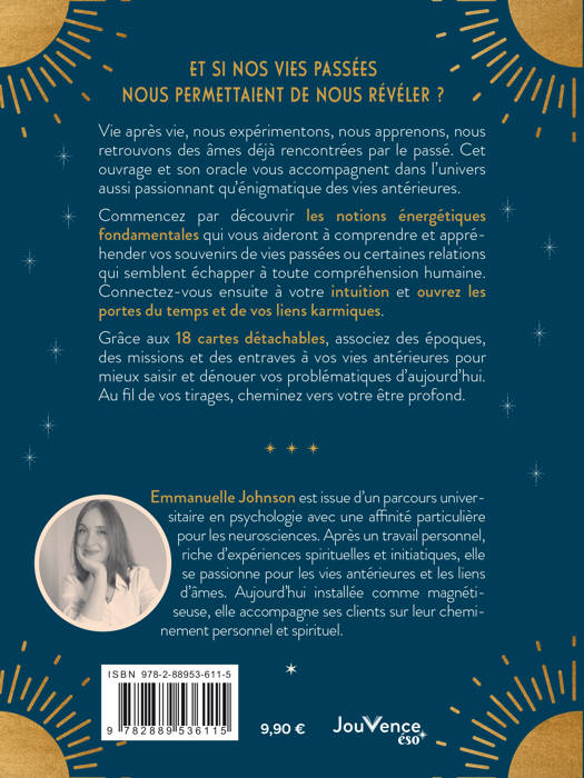 Vie après vie, nous expérimentons, nous apprenons, nous retrouvons des âmes déjà rencontrées par le passé. Cet ouvrage et son oracle vous accompagnent dans l’univers aussi passionnant qu’énigmatique des vies antérieures.