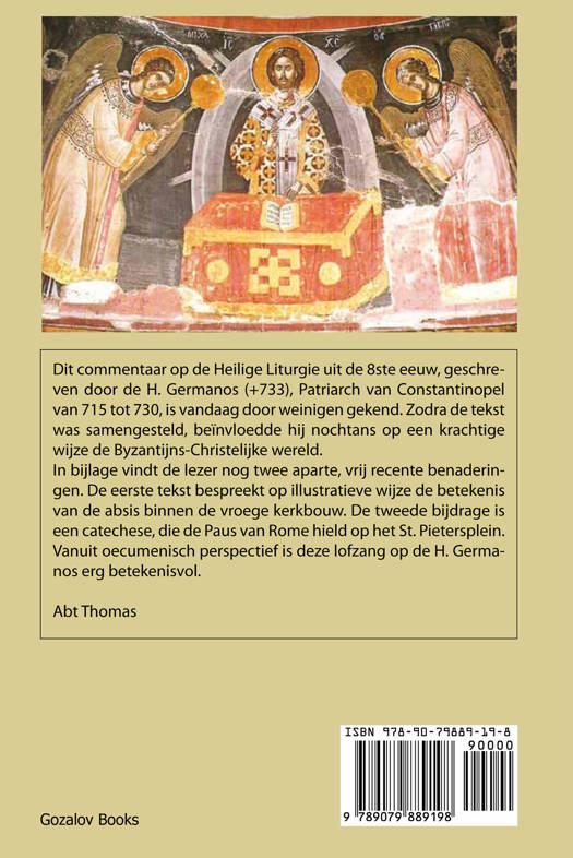 Dit commentaar op de Heilige Liturgie uit de 8ste eeuw, geschreven door de H. Germanos (+733), Patriarch van Constantinopel van 715 tot 730, is vandaag door weinigen gekend. Zodra de tekst was samengesteld, beïnvloedde hij nochtans op een krachtige wijze de Byzantijns-Christelijke wereld. In bijlage vindt de lezer nog twee aparte, vrij recente benaderingen. De eerste tekst bespreekt op illustratieve wijze de betekenis van de absis binnen de vroege kerkbouw. De tweede bijdrage is een catechese, die de Paus van Rome hield op het St. Pietersplein. Vanuit oecumenisch perspectief is deze lofzang op de H. Germanos erg betekenisvol.