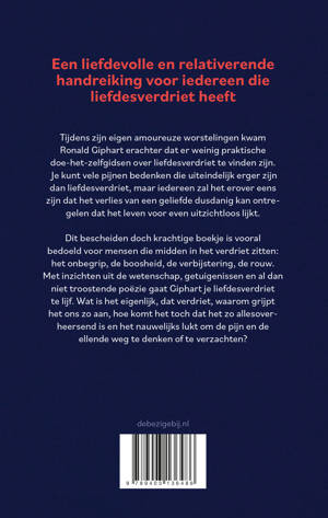 Dit bescheiden doch krachtige boekje is vooral bedoeld voor mensen die midden in het verdriet zitten: het onbegrip, de boosheid, de verbijstering, de rouw. Met inzichten uit de wetenschap, getuigenissen en al dan niet troostende poëzie gaat Giphart je liefdesverdriet te lijf. Wat is het eigenlijk, waarom grijpt het ons zo aan, hoe