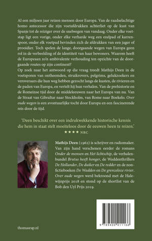 Al een miljoen jaar reizen mensen door Europa. Van de raadselachtige homo antecessor die zijn voetafdrukken achterliet op de kust van Engeland tot de reiziger over de snelwegen van vandaag. Onder elke voetstap ligt een vorige, onder elke verharde weg een ezelpad of karrenspoor, onder elk voetpad bevinden zich de afdrukken van een jager of prooidier. Toch spelen de lange, doorgaande wegen van Europa geen rol in de verbeelding of de identiteit van haar bewoners. Waarom heeft de Europeaan zo’n ambivalente verhouding ten opzichte van de doorgaande routes van zijn continent? Op zoek naar het antwoord op die vraag treedt Mathijs Deen in de voetsporen van ontheemden, struikrovers, pelgrims, gelukzoekers en veroveraars die hun weg hebben gezocht langs de kusten, de rivieren en de wegen van Europa, en vertelt hij hun verhalen.