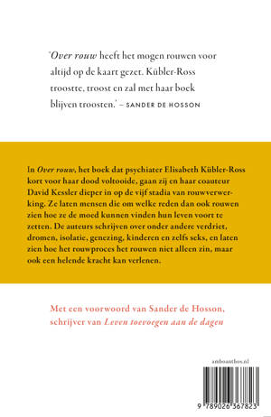 In Over rouw gaan Elisabeth Kübler-Ross en haar coauteur David Kessler dieper in op de vijf stadia van rouwverwerking, om iedereen die om welke reden dan ook rouwt te laten zien hoe ze de moed kunnen vinden hun leven voort te zetten.
