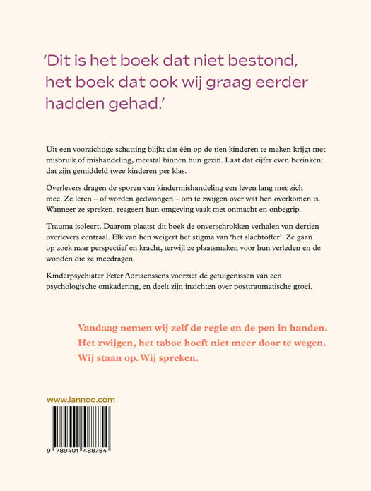 Overlevers dragen de sporen van kindermishandeling een leven lang met zich mee. Ze leren - of worden gedwongen - om te zwijgen over wat hen overkomen is. Wanneer ze spreken, reageert hun omgeving vaak met onmacht en onbegrip.