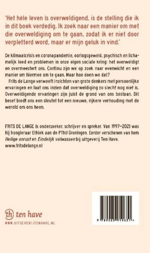 Frits de Lange verweeft inzichten van grote denkers met persoonlijke ervaringen en laat ons inzien dat overweldiging zo slecht nog niet is. Overweldigende ervaringen zijn juist de grond van ons bestaan. Dit besef biedt ons een sleutel tot een nieuwe, rijkere verhouding met de wereld om ons heen.