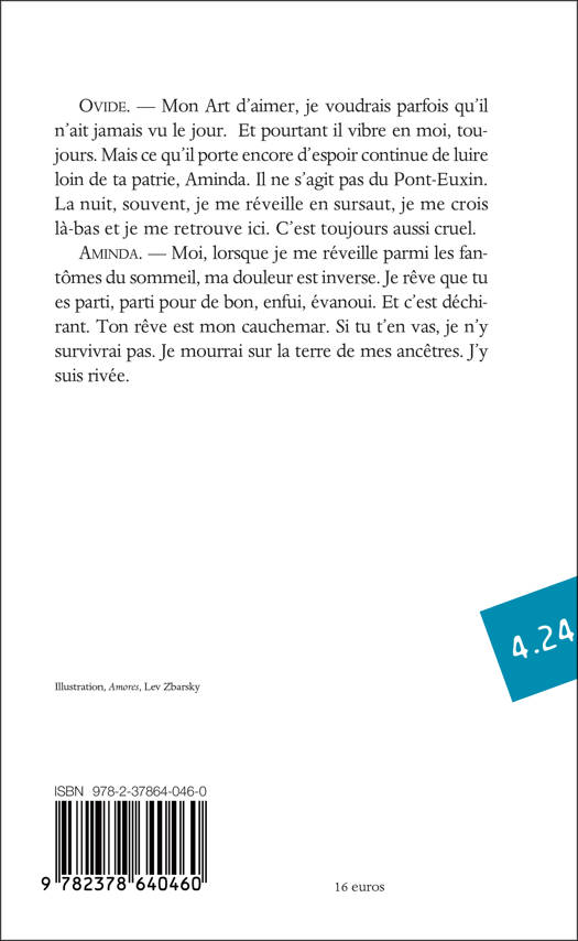 Ovide, le grand poète de toutes les séductions, le favori des élégances romaines, s’est trouvé brutalement exilé par Auguste sur les bords lointains de la mer Noire : parages barbares à ses yeux. Sa douleur, au cœur d’un exil qui le fige loin de la Ville et de ses bonheurs enfuis, n’efface pas tout à fait le rêve d’un retour. Mais à quel prix serait-ce ? On saisit ici l’homme blessé au moment intense où l’arrivée d’un nouvel envoyé du Prince, fonctionnaire cynique et madré, vient concentrer soudain devant lui la résurgence d’un fol espoir. La sentence sera-t-elle levée ? Il y faudrait qu’Ovide trahisse les habitants colonisés qui l’ont accueilli généreusement et qui songent à une révolte armée. Aminda, fille de ces contrées, héritière des Amazones, est déchirée entre sa passion pour le poète et sa fidélité à son peuple opprimé. Unité de lieu, unité de temps. Au fil de ces trois actes, entre raison et passion, entre politique et littérature, entre rumeur et vérité, entre réalisme et générosité, le sort balance.