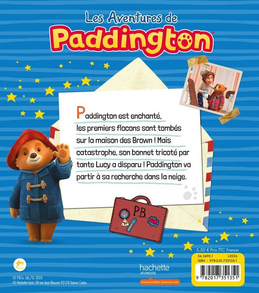 Résumé : Paddington est enchanté, les premiers flocons sont tombés sur la maison des Brown ! Mais catastrophe, son bonnet tricoté par tante Lucy a disparu ! Paddington va partir à sa recherche dans la neige.