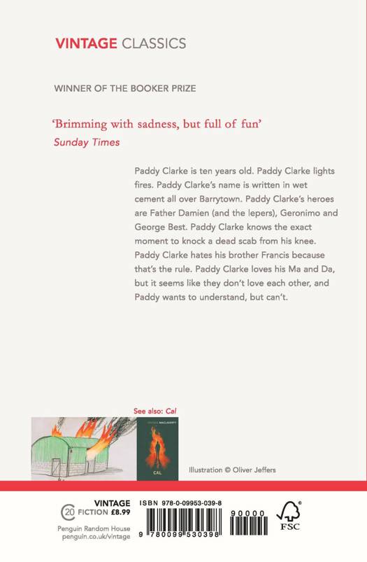 WINNER OF THE BOOKER PRIZE 1993Paddy Clarke is ten years old. Paddy Clarke's heroes are Father Damien (and the lepers), Geronimo and George Best. Paddy Clarke loves his Ma and Da, but it seems like they don't love each other, and Paddy wants to understand, but can't. See also: Cal by Bernard MacLaverty