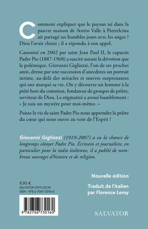 Comment expliquer que le paysan né dans une maison modeste à Pietrelcina ait dû partager ses humbles jours avec les anges ? Dieu l'a choisi et il ne s'est pas dérobé. Qui es-tu donc Padre Pio ? Un homme de prière qui parlait avec Dieu, et dont les groupes de prière sont la plus belle invention, certes. Mais aussi le serviteur de Dieu, le stigmatisé qui avouait : « Je suis un mystère pour moi-même. » Saint Pio de Pietrelcina, que ces pages de ta vie nous apprennent la prière du cÅur qui nous ouvre au vent de l'Esprit !