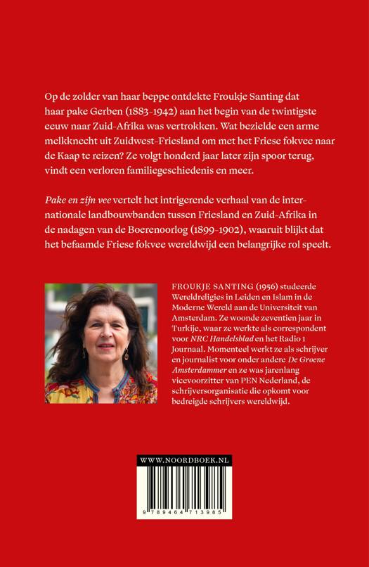 Pake en zijn vee vertelt het intrigerende verhaal van de internationale landbouwbanden tussen Friesland en Zuid-Afrika in de nadagen van de Boerenoorlog (1899-1902), waaruit blijkt dat het befaamde Friese fokvee wereldwijd een belangrijke rol speelt.
