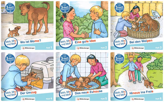 Alle Kinder lernen die gleiche Geschichte kennen. Jedes Kind kann die Geschichte in 6 Folgen (Heft 1 bis 6) entsprechend seiner Fähigkeiten (Schwierigkeitsstufe A, B oder C) erlesen. Anschließend können alle Kinder gemeinsam über diese eine Geschichte sprechen und diskutieren.Die unterschiedlichen Zugänge zu den 6 Fortsetzungsgeschichten führen zu einem gemeinsamen Erlebnis. Der Inhalt stiftet Gemeinsamkeit. Kein Kind muss allein zurück bleiben. Im Laufe der Zeit kann jedes Kind sich an den drei Schwierigkeitsstufen der Geschichten versuchen. So wird Lernfortschritt ganz praktisch erfahrbar. Das spornt an und macht Mut.- Heft 1: Wo ist Mama?- Heft 2: Eine gute Idee- Heft 3: Bei den Welpen- Heft 4: Der Umzug- Heft 5: Das neue Zuhause- Heft 6: Hinaus ins FreieSchwierigkeitsstufe ATypografische Mittel - Sehr einfach (kompakt mit Streubildern):- Silbenmarkierung- erhöhter Silben- und Wortabstand- Streubilder- große Fibel-Schrift- farbige Illustrationen zu jeder TextseiteSprachliche Mittel- Streubilder ersetzen Nomen- Begleitsätze zur wörtlichen Rede werden durch Streubilder ersetzt- wenige lange Wörter- wenige seltene Wörter- wenige Attributergänzungen- kurze, einfache Sätze - eine fortlaufende Geschichte wird erzählt- geringer Textumfang