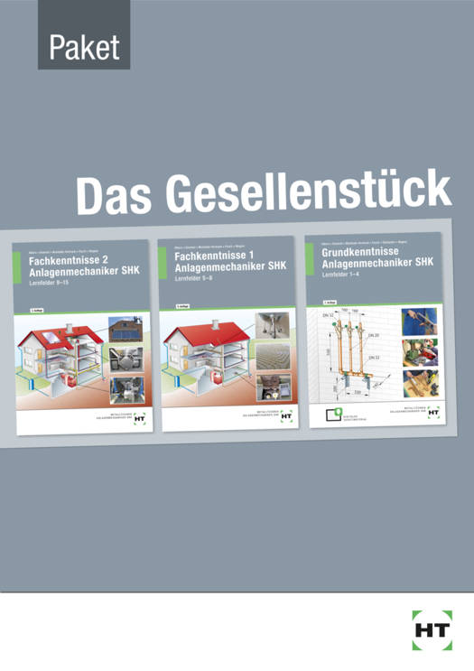 Das Buchpaket enthält die Titel- "Fachkenntnisse 2 Anlagenmechaniker SHK Lernfelder 9-15" (ISBN978-3-582-69628-1),- "Fachkenntnisse 1 Anlagenmechaniker SHK Lernfelder 5-8" (ISBN978-3-582-86302-7) und- "Grundkenntnisse Anlagenmechaniker SHK Lernfelder 1-4 (ISBN978-3-582-28171-5)