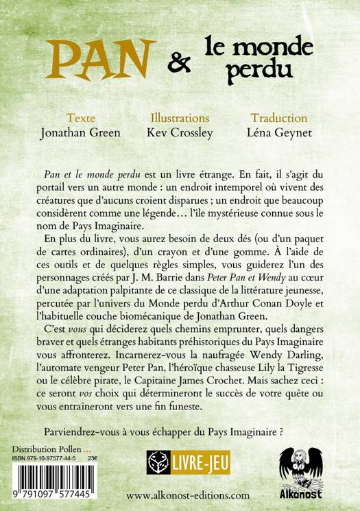 Pan et le monde perdu se définit comme la fusion des univers de Peter Pan (J. M. Barrie) et du Monde perdu (Arthur Conan Doyle), avec l’habituelle couche biomécanique de Green. On peut ainsi y incarner quatre personnages refaçonnés :<br /><br /> ⺠un Peter Pan mécanisé,<br /><br /> ⺠une Lily guerrière, montée sur un tigre à dents de sabre,<br /><br /> ⺠une Wendy naufragée pro de la survie,<br /><br /> ⺠et même un Capitaine Crochet plus sadique que jamais !