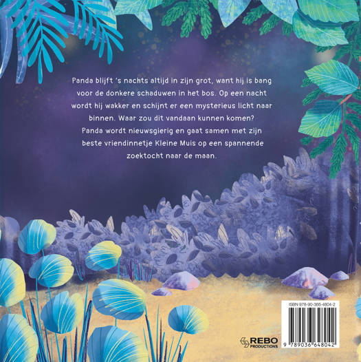 Panda blijft ’s nachts altijd in zijn grot, want hij is bang voor de donkere schaduwen in het bos. Op een nacht wordt hij wakker en schijnt er een mysterieus licht naar binnen. Waar zou dit vandaan kunnen komen? Panda wordt nieuwsgierig en gaat samen met zijn beste vriendin, Kleine Muis, op een spannende zoektocht naar de maan.