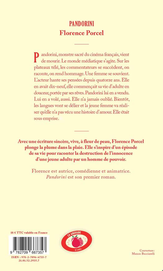 L’acteur hante ses pensées depuis quatorze ans. Elle en avait dix-neuf, elle commençait sa vie d’adulte en douceur, portée par ses rêves. Pandorini lui en a vendu. Lui en a volé, aussi. Elle n’a jamais oublié. Bientôt, les langues vont se délier et la jeune femme va réaliser qu’elle n’a pas vécu une histoire d’amour. Elle était sous emprise.