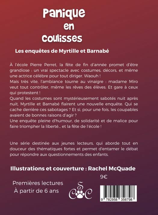 À l'école Pierre Perret, la fête de fin d'année promet d'être grandiose : un vrai spectacle avec costumes, décors, et même une actrice célèbre pour tout diriger. Waouh ! Mais très vite, l'ambiance tourne au vinaigre : madame Miro veut tout contrôler, même les rêves des élèves. Et gare à ceux qui protestent ! Quand les costumes sont mystérieusement sabotés nuit après nuit, Myrtille et Barnabé flairent une nouvelle enquête. Qui se cache derrière ces sabotages ? Et si, pour une fois, les coupables avaient de bonnes raisons d'agir ? Une enquête pleine d'humour, de solidarité et de malice pour faire triompher la liberté... et la fête de l'école !